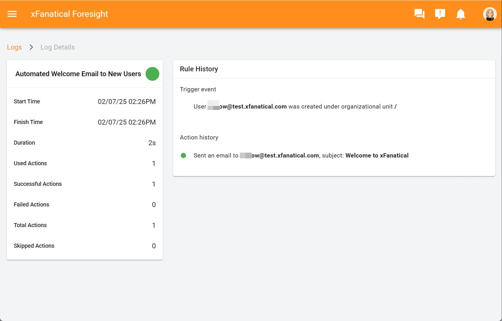 - Once the automation rule is established, xFanatical Foresight will auto-pilot the welcome emails. No manual intervention is required. xFanatical Foresight frees you up from hours of repetitive welcome emailing tasks every month.