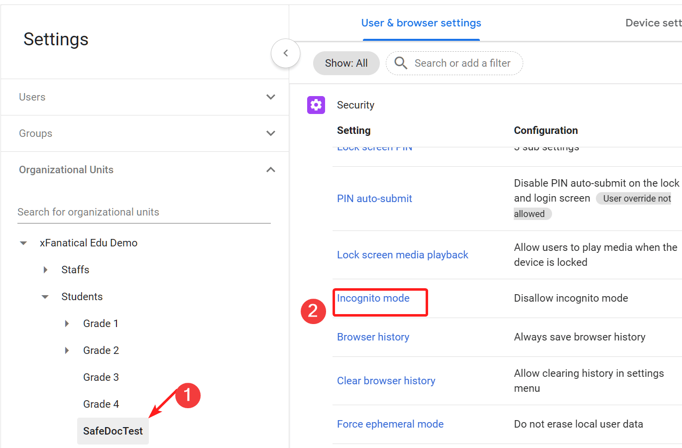 Step 4: Customize User & Browser settings for the OU