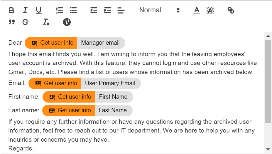- Compose an email to notifying the user’s manager regarding the archived user's information.