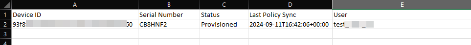 - Rule 1 lists and exports Chromebooks to a CSV file, including the Device ID, Serial Number, Status, Last Policy Sync, and User. Admin needs to keep only the rows for the devices they wish to disable and remove the rest.